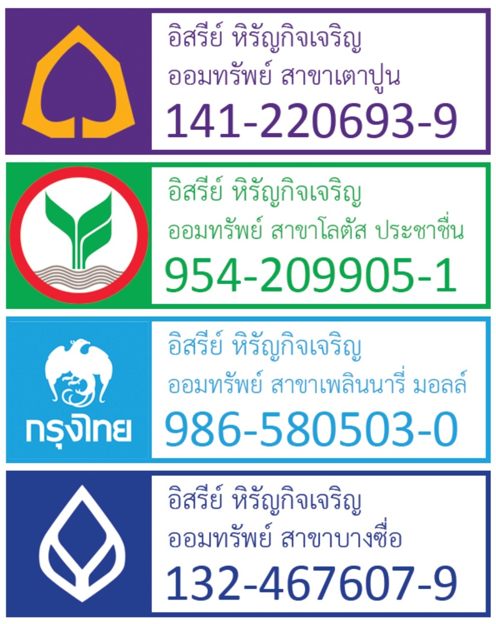 ธนาคารกรุงไทย ชื่อบัญชี อิสรีย์ หิรัญกิจเจริญ